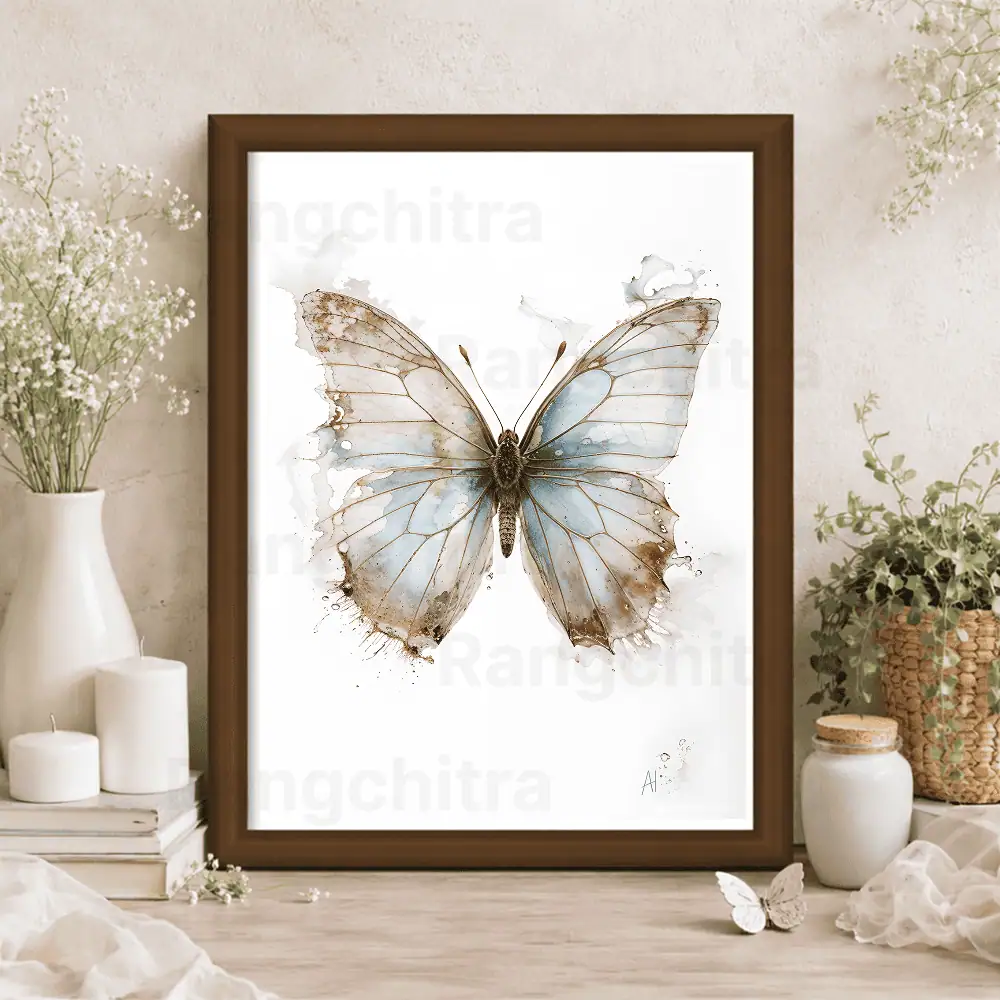 Bring the spirit of freedom, lightness, and beauty into your home with this stunning blue butterfly wall art print, created exclusively by Rangchitra. Featuring soft watercolor tones in dreamy shades of blue and teal, this piece captures the delicate grace of a butterfly in full flight — making it one of the most soulful blue butterfly wall art prints available online in India.